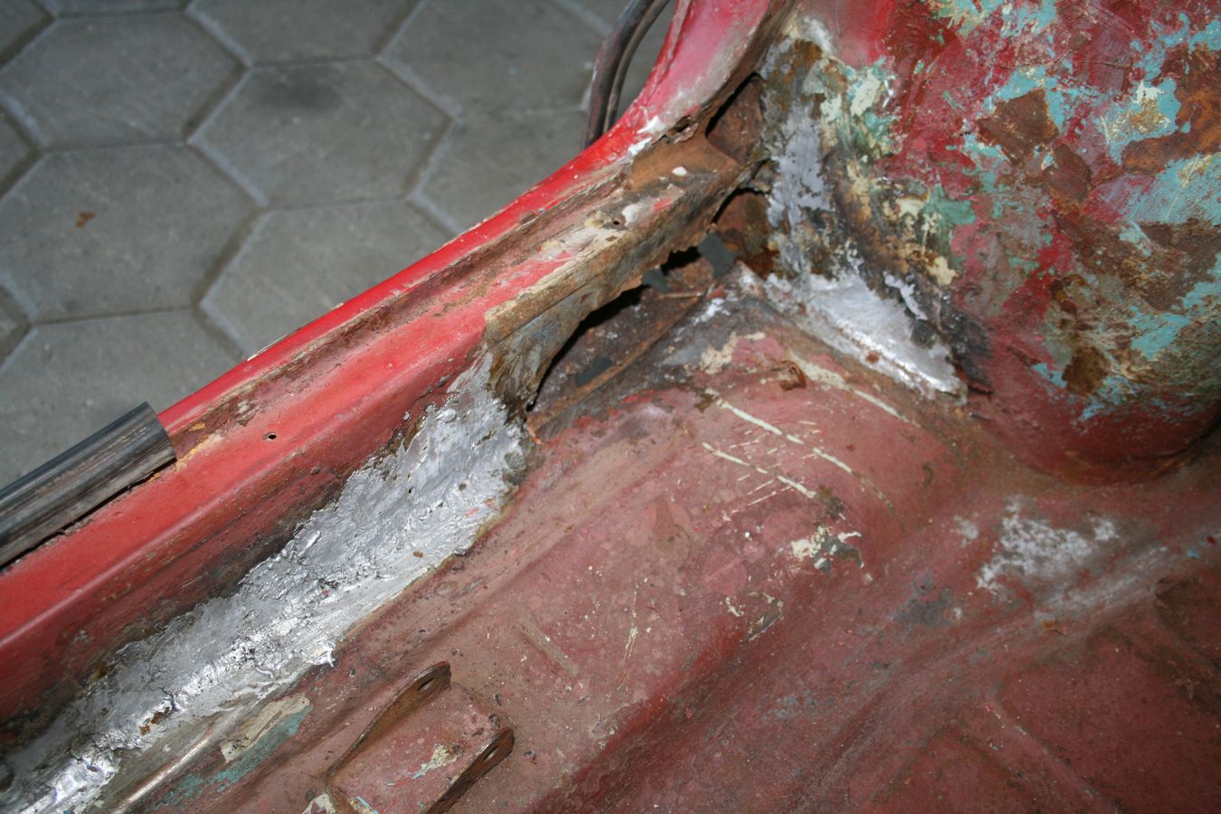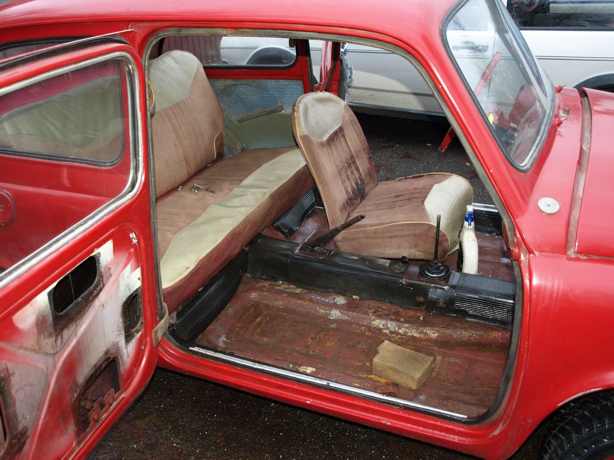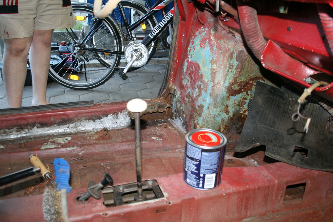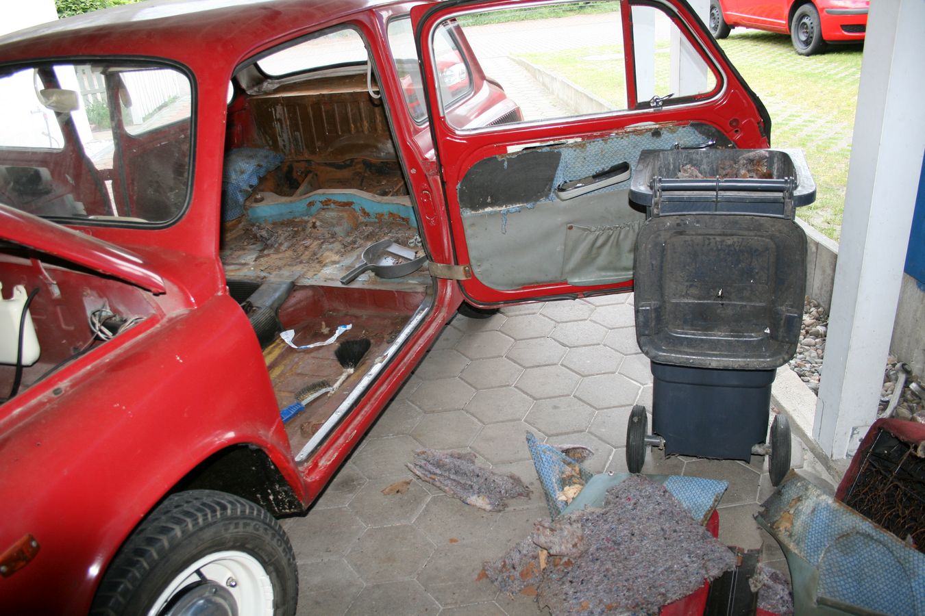 fast vollständig und nicht stark vom Rost angefressen. Begonnen wurde dabei im Innenraum. Dabei wurde alles ausgebaut und der