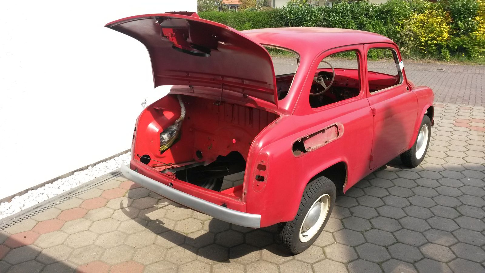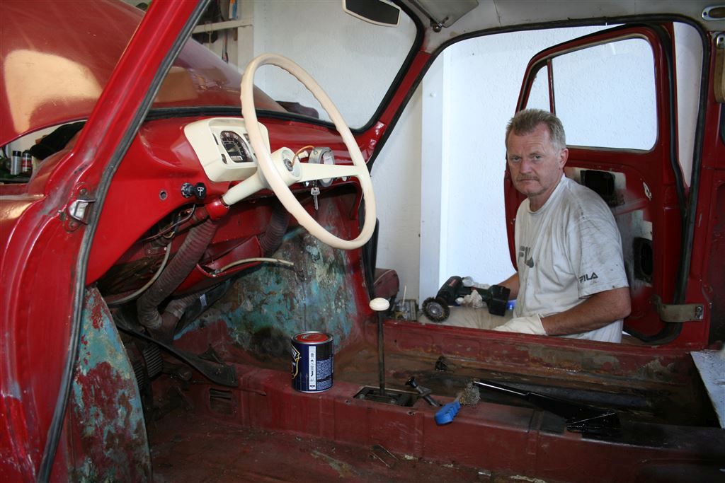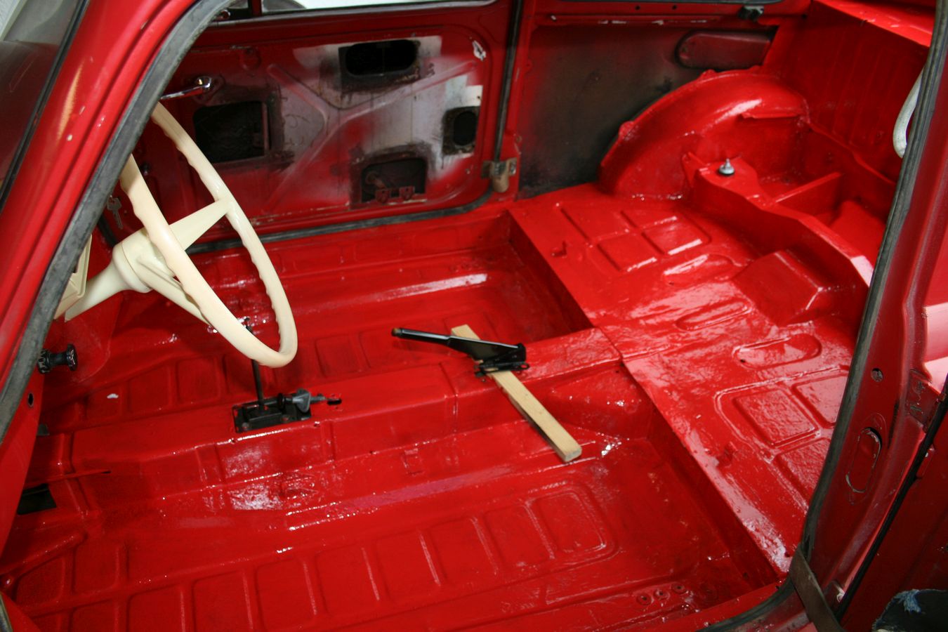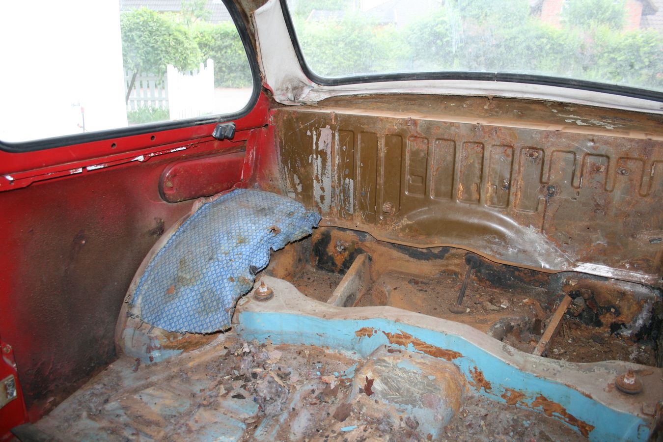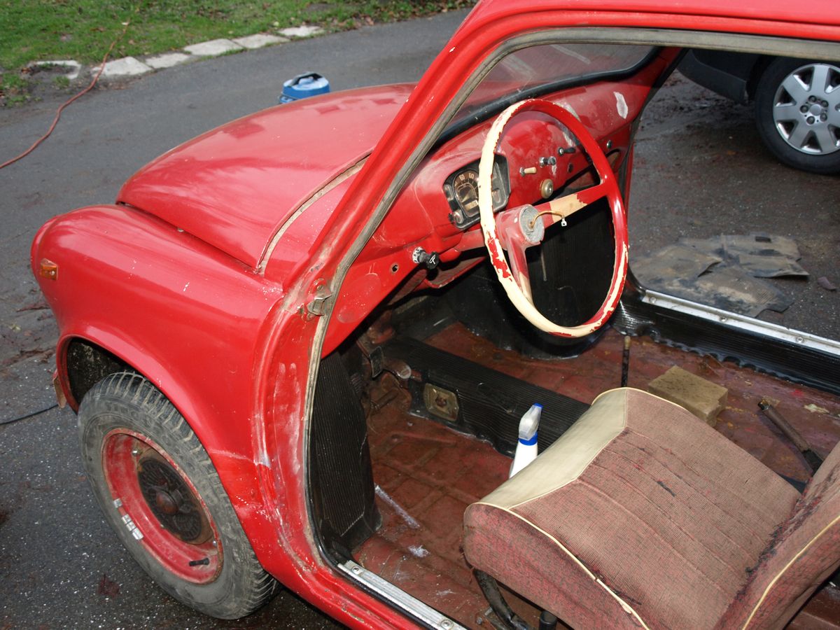 fast vollständig und nicht stark vom Rost angefressen. Begonnen wurde dabei im Innenraum. Dabei wurde alles ausgebaut und der