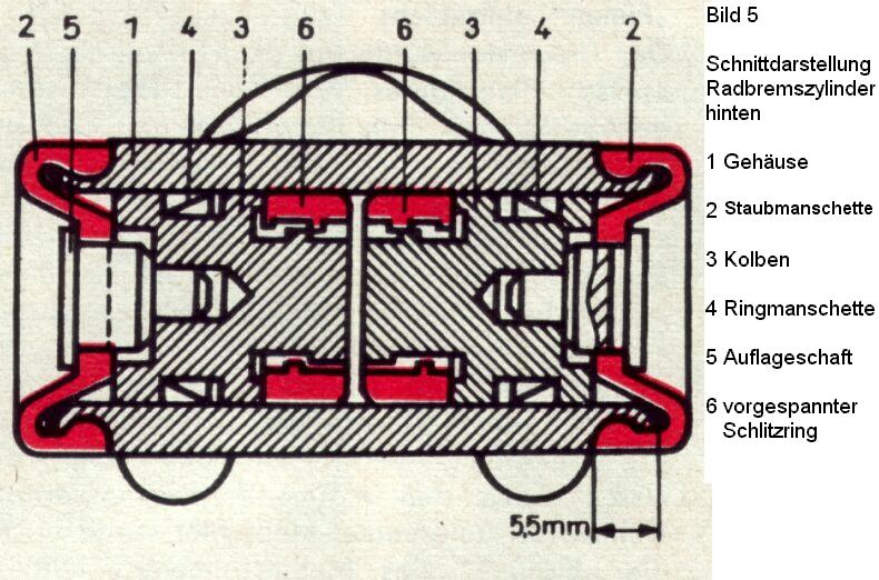 zu ermitteln ist. An beiden Radbremszylindern wird die Staubmanschette (Bild