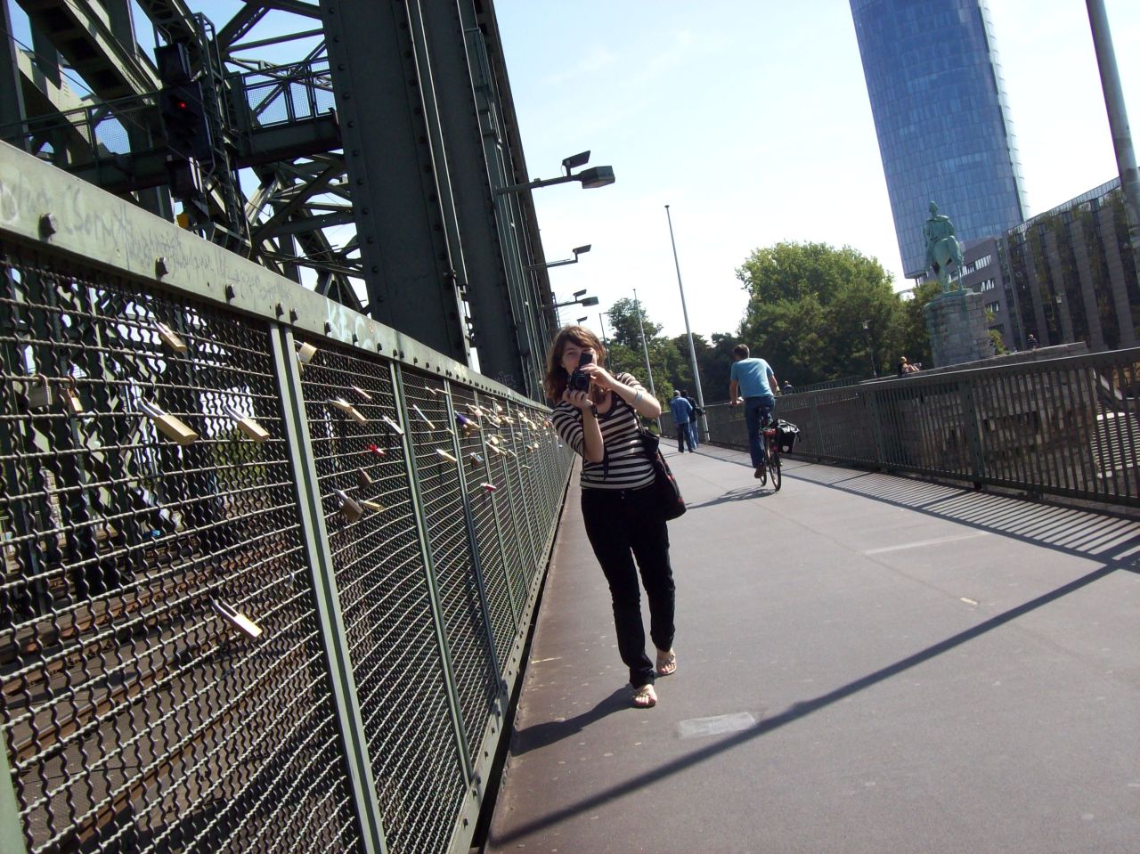 über den Rhein zum Dom. Die an der Brücke festgeketteten Schlösser