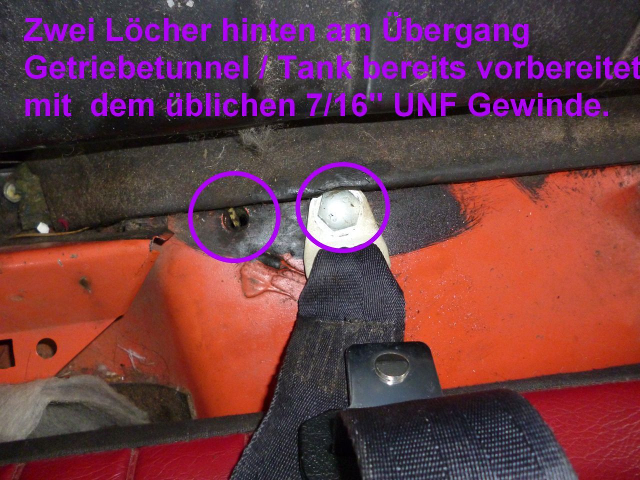 Löche für die Gurtbefestigung mit dem üblichen 7/16" UNF Gewinde, d.h.