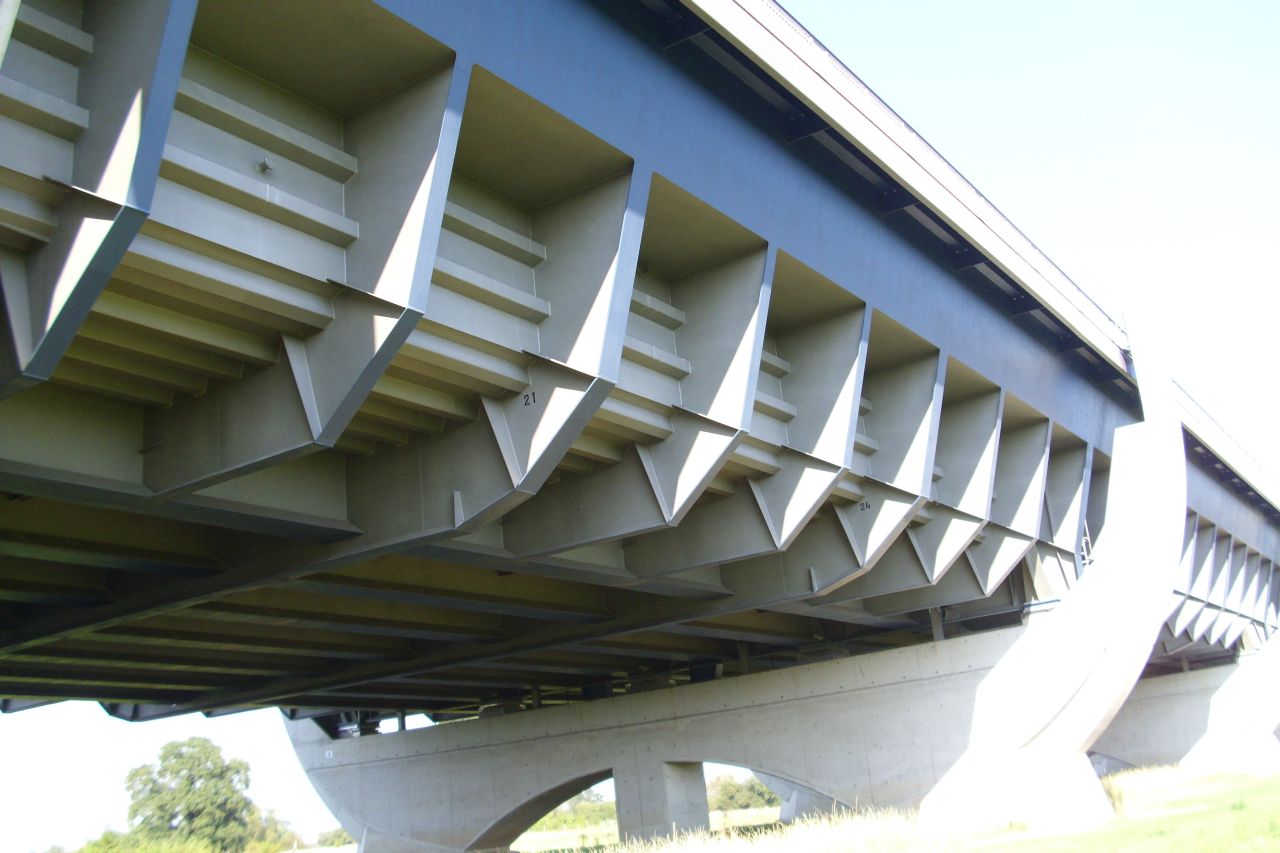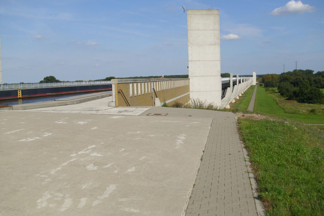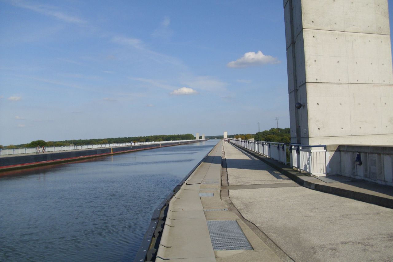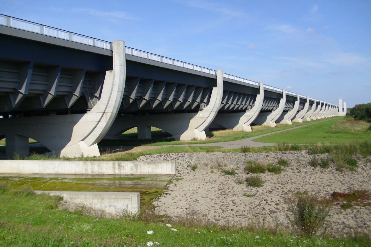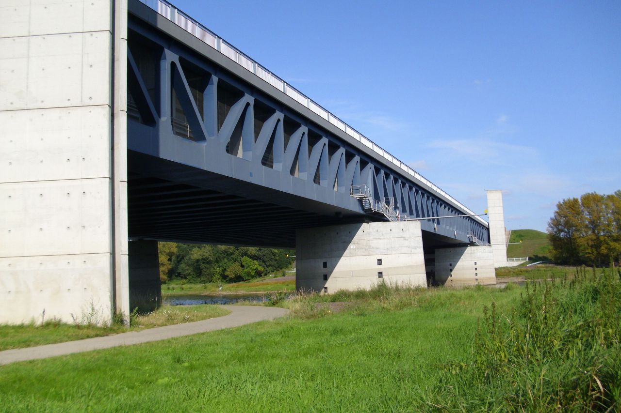 Die Trogbrücke für den Mittellandkanal über die Elbe nördlich von Magdeburg. Mehr Infos gibt es hier: